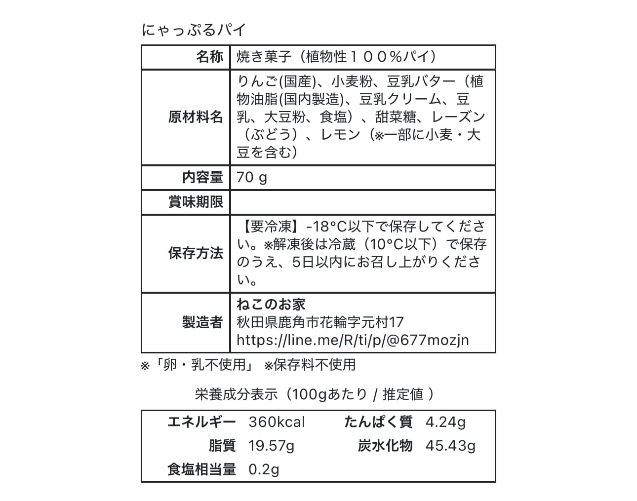 【送料込み/初回限定1セット】ねこのお家のアップルパイ |猫好きさんへ|お試し2個セット|植物性100%|乳・卵・動物性バター不使用|